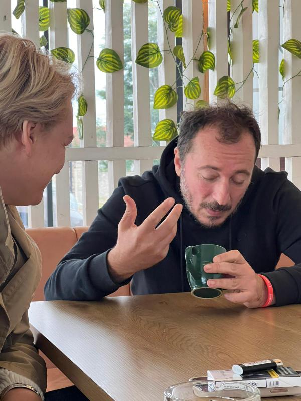 Григор извади кафе, некој вид што прв пат го видов, инфузирано со црвено вино. Го направи како турско и откако го испи махинално ја сврте својата шоља. Го фатив на неспремно. Веднаш го пуштив мобилниот да снима, потсетувајќи се на претходни муабети дека гледа на кафе. Симболиката беше уште појака со оглед на тоа дека во виното е, нели, вистината. А мојата шоља се покажа баш добра.