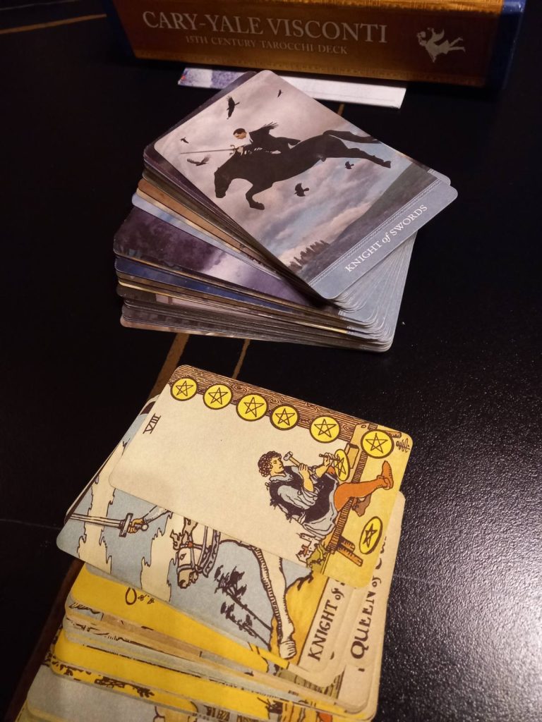 И како што реков на некои мои 17-18 години почнав да читам за таротот, да истражувам. Некое време подоцна кога почнав факултет, пријателите, колегите од факултет ми го подарија првиот шпил со кој што имам работено. И нормално како и секој шпил си дојде со книга, со инструкции и од таму ги учев правилата, каков систем е, како функционира, колку имам јас слобода на интерпретација во тоа. И полека, полека почнував да ги совладувам.